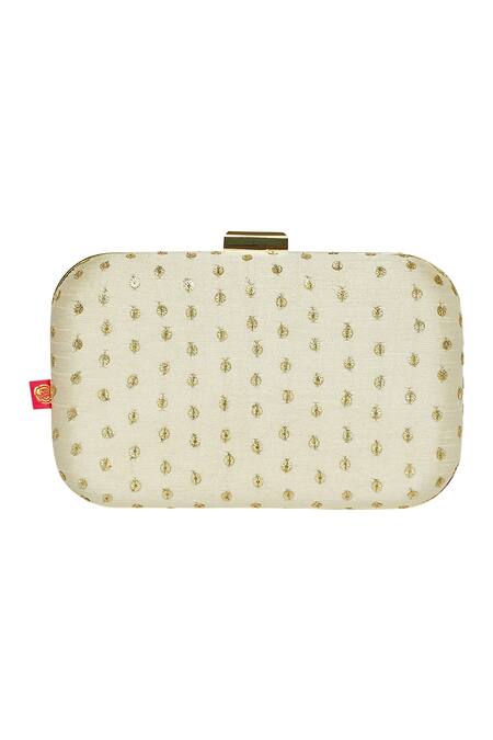 Cream Sequins Embroidered Clutch