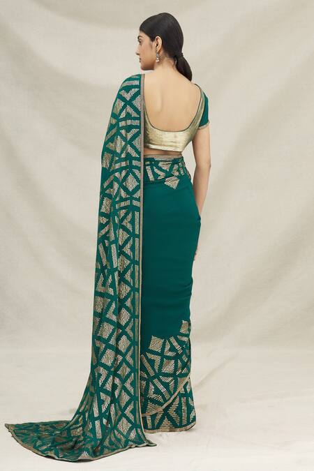 Dark teal saree with geometric sequin embroidery. Comes with sequin blouse.