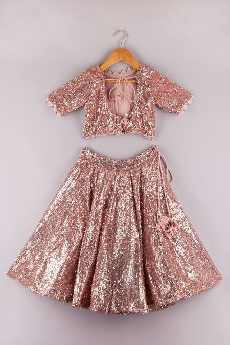 Pink georgette embroidered lehenga in sequin work. Paired with an embroidered choli.