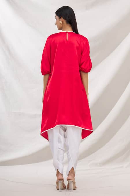 Buy_Bhairavi Jaikishan_Red Modal Satin Sequins Round Embroidered Kurta_Online_at_Aza_Fashions