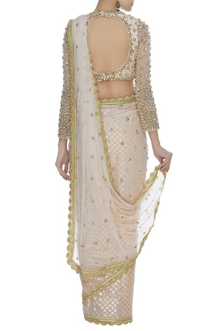 Buy_Priyanka Jain_Peach Embroidered Saree With Blouse _Online_at_Aza_Fashions