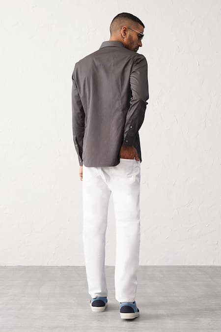 Seven_Grey Cotton Ameoba Contrast Panel Shirt_Online_at_Aza_Fashions