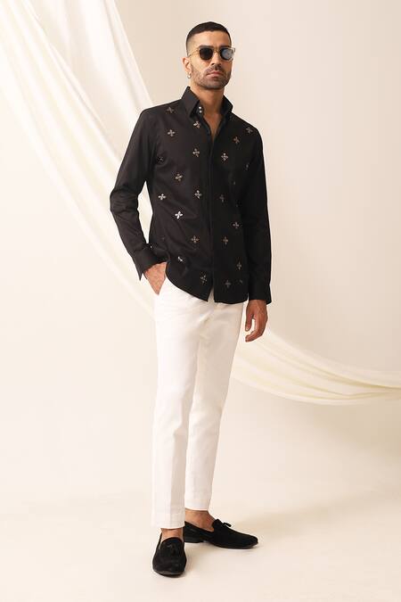 Buy_Seven_Black Cotton Diamonds, Patchwork Work Shirt_Online_at_Aza_Fashions