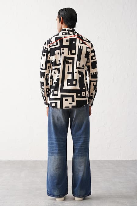 Shop_Seven_Black Cotton Geometric Print Shirt_Online_at_Aza_Fashions