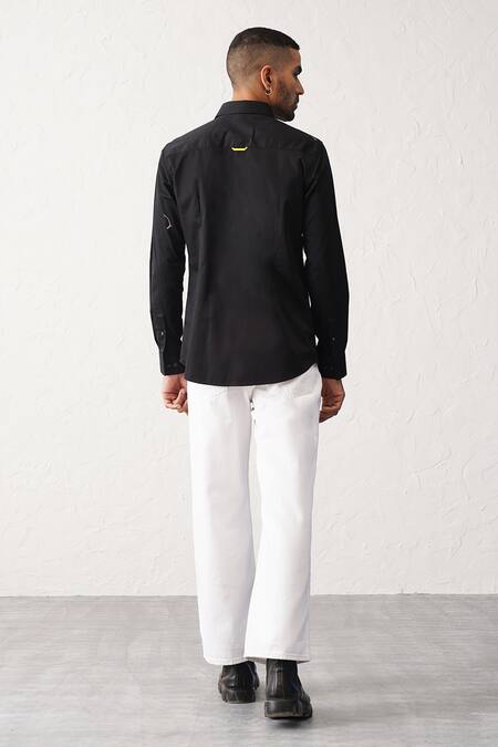 Buy_Seven_Black Cotton Embroidery Heart Beat Shirt_Online_at_Aza_Fashions
