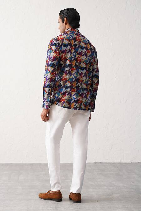 Buy_Seven_Multi Color Cotton Houndstooth Print Shirt_at_Aza_Fashions
