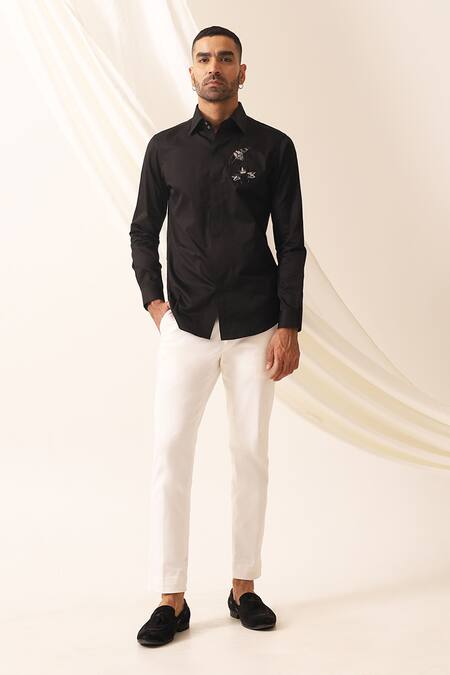 Buy_Seven_Black Cotton Embroidery Moth Motif Shirt_Online_at_Aza_Fashions