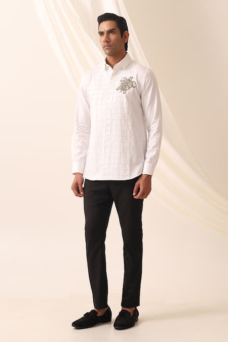 Seven_White Cotton Embroidery Quick Turtle Motif Shirt_Online_at_Aza_Fashions