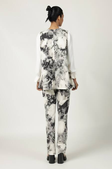 Grey cloud wash pant featuring a side conceal zip, cross pockets, and an elasticated waist at the back