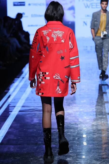 Embroidered, Button embellished, Note:, Accessory worn by the model is not for sale