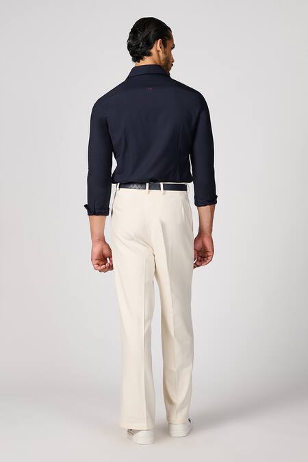 Blue Viscose, Polyester Embroidery Batsman Logo Shirt