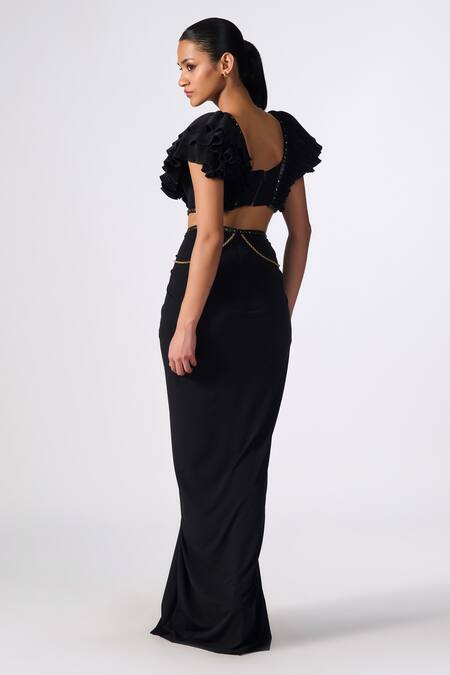 Frilled layered ruffle sleeves, Metallic stud and chain embellishments, Side cut-outs for a bold look