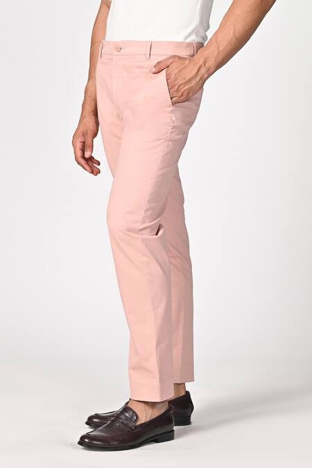 Buy_S&N By Shantnu Nikhil_Pink Cotton, Twill Straight Fit Trouser_at_Aza_Fashions