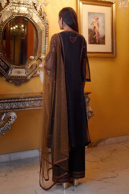 Black Organza, Crepe, Mukaish Net, Satin Linen, Soft Embroidered And Kurta Set