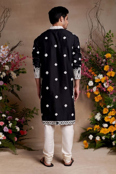 Black chanderi kurta featuring resham and anchor embroidery with floral buttis