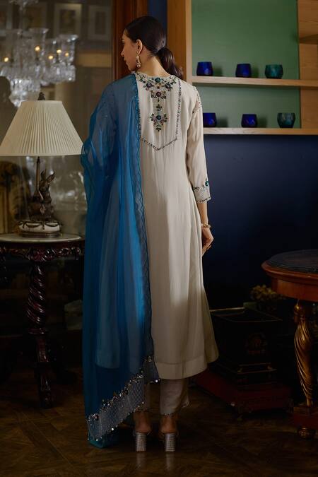 Grey Organza, Georgette, Satin Linen Sequin Keyhole Embroidered Anarkali Set