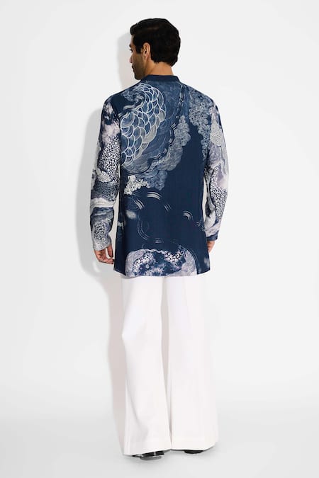 Blue Tussar Swirl Print Obsidian Short Kurta