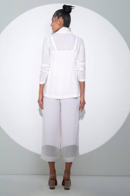 White Crepe Square , Shawl Collar Jacket And Cropped Culottes Set