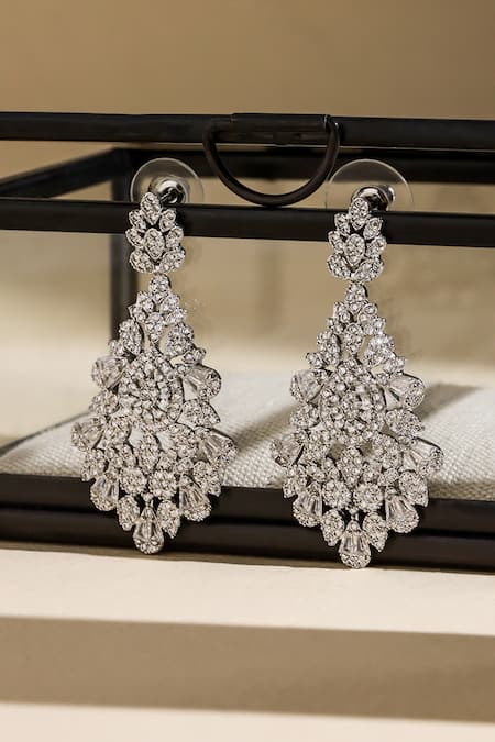 Buy_Shazé_Silver Plated Stones Pizzaz Clear Studded Earrings_at_Aza_Fashions