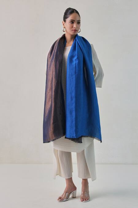 Blue Reversible Zari Woven Stole
