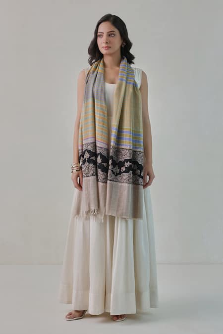 Multi Color Multicolor Stripe Woven Pashmina Stole