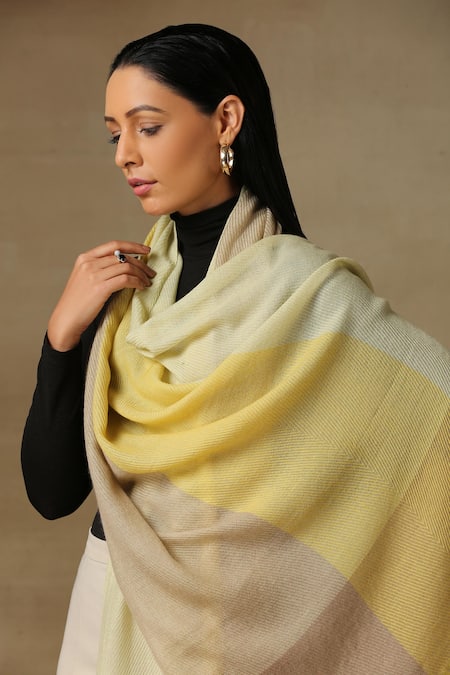 Buy_SHAZA_Yellow Pardah Stole In Lemon_at_Aza_Fashions
