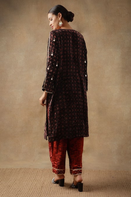 Black Velvet, Silk Mirrors, Sequins, Mirrorwork Paisley Pattern Kurta Pant Set