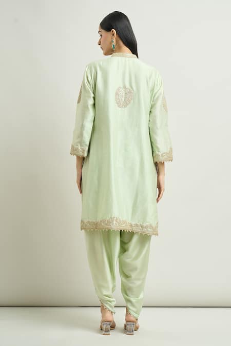 Green Cotton Embroidery Mandarin Collar Aadirah Kurta And Dhoti Pant Set