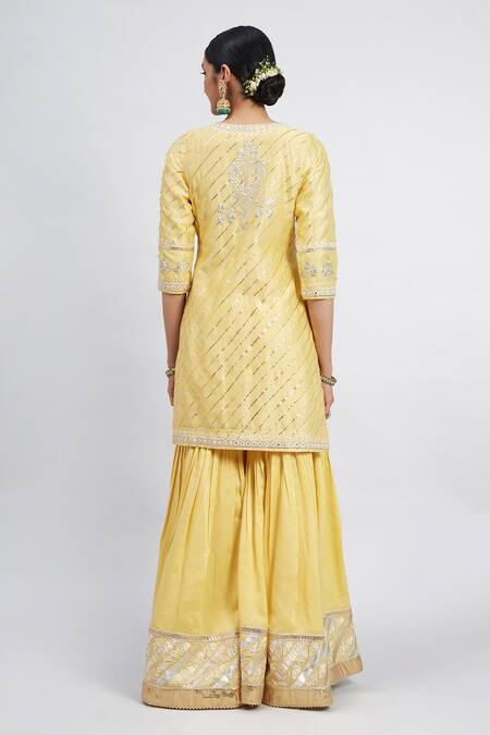 Buy_Sheetal Batra_Yellow Kurta And Gharara Chanderi Banarasi Dupatta Eliza Set_Online_at_Aza_Fashions