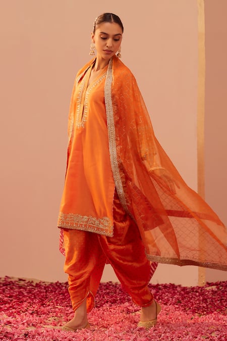 Orange , Bamboo, Organza Zari, Gota Faheeda Kurta Dhoti Pant Set