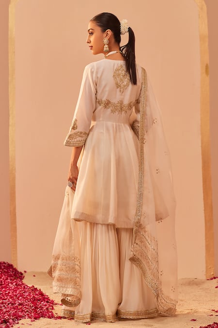 Ivory , Chanderi, Georgette, Fatima Peplum Anarkali Gharara Set