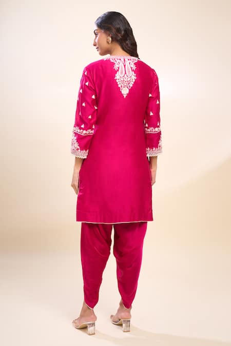 Buy_Sheetal Batra_Pink Embroidery Round Neck Hot Kurta And Set