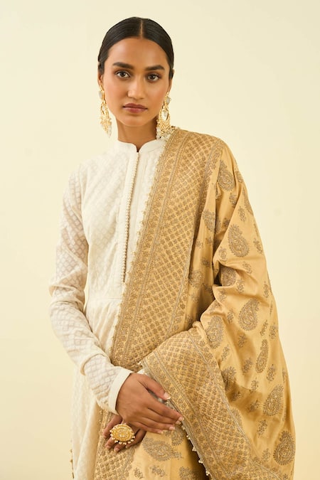 Gold Raw Silk Tilla Embroidered Dupatta