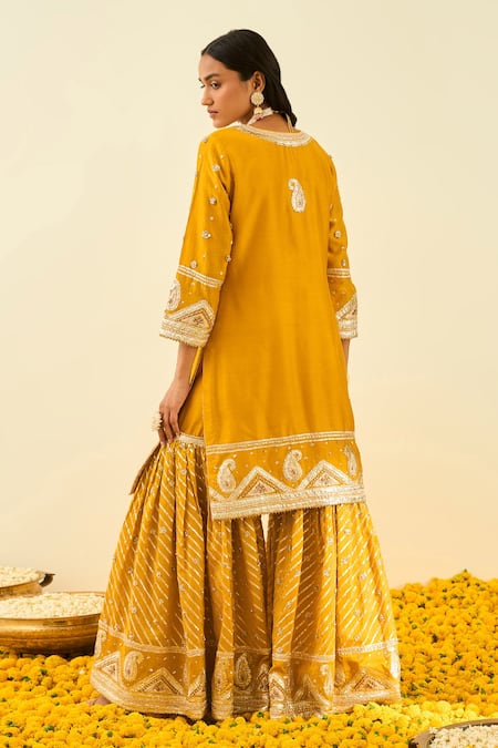 Yellow Kurta And Gharara - Chanderi Dupatta - Organza Shafna Set