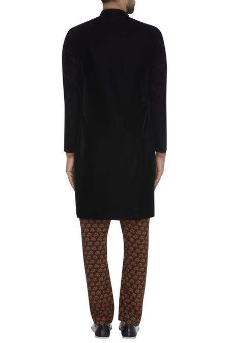 Black Velvet Embroidered Sherwani With Printed Pants And Stole