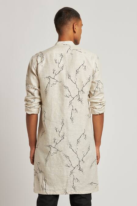 Ivory 100% Linen Printed Twig Sherwood Kurta