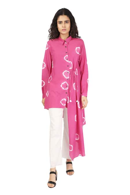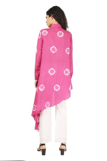 Buy_The Pot Plant Clothing_Pink Cotton Silk Shibori Draped Shirt Tunic_Online_at_Aza_Fashions