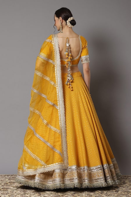Yellow Lehenga Cotton Chanderi Embroidery Gota Patti Leaf Neck Set