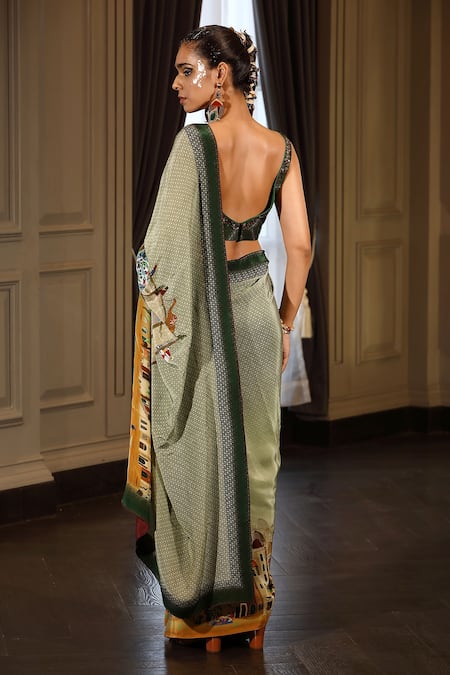 Shilpi Gupta_Green Blouse Dupion And Saree Crepe Print & With  _Online_at_Aza_Fashions