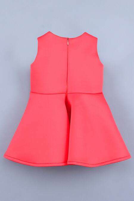 Neon pink dress with star shimmer motifs & 3D bow detail.
