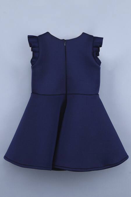 Dark blue dress with star shimmer motifs & 3D bow detail.