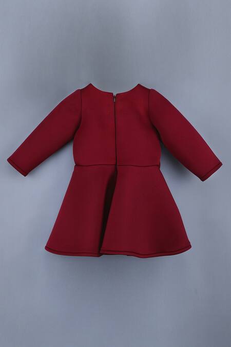 Maroon dress with star shimmer motifs & 3D bow detail.