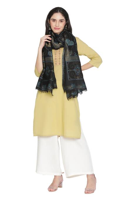 Buy_Shingora_Black Woven Floral Stole _at_Aza_Fashions