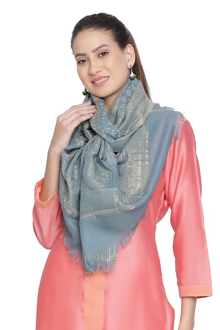 Blue Nagma Woven Design Wool Stole
