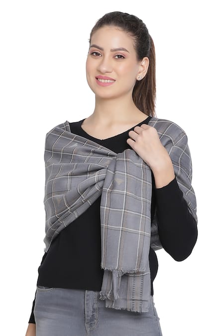 Grey Checkered Tim-tim Wool Woven Stole