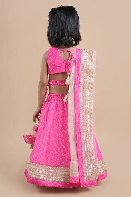 Shining Kanika_Pink Chanderi Embroidered Sequin Bandhani Pattern Lehenga Set_Online_at_Aza_Fashions