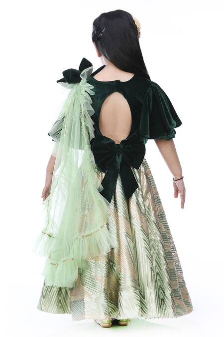 Green Blousevelvet Embroidery Sequin Helix Prism Lehenga Blouse Set