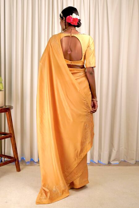 Shiori_Yellow Blouse Fabric- Chanderi, Saree- Silk Zardozi Sehar Embroidered_Online_at_Aza_Fashions
