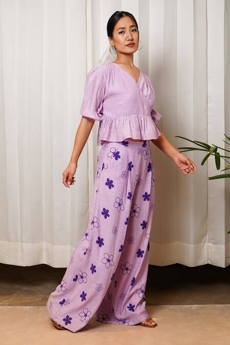 Purple Slub Chanderi Plain V Neck Wrap Top