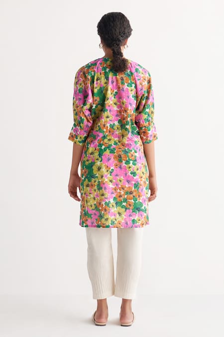 Multi Color Pure Cotton Digital Printed Woven Gardenia Floral Kurta And Pant Set